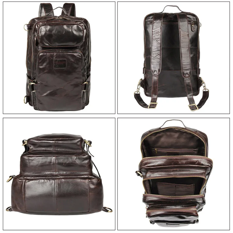 Buy Brand High Quality 100% Real Leather Men Travel bags Backpacks Double zipper Big capacity Cross Bod