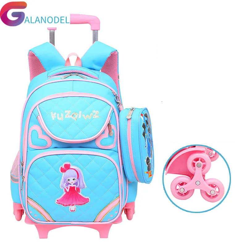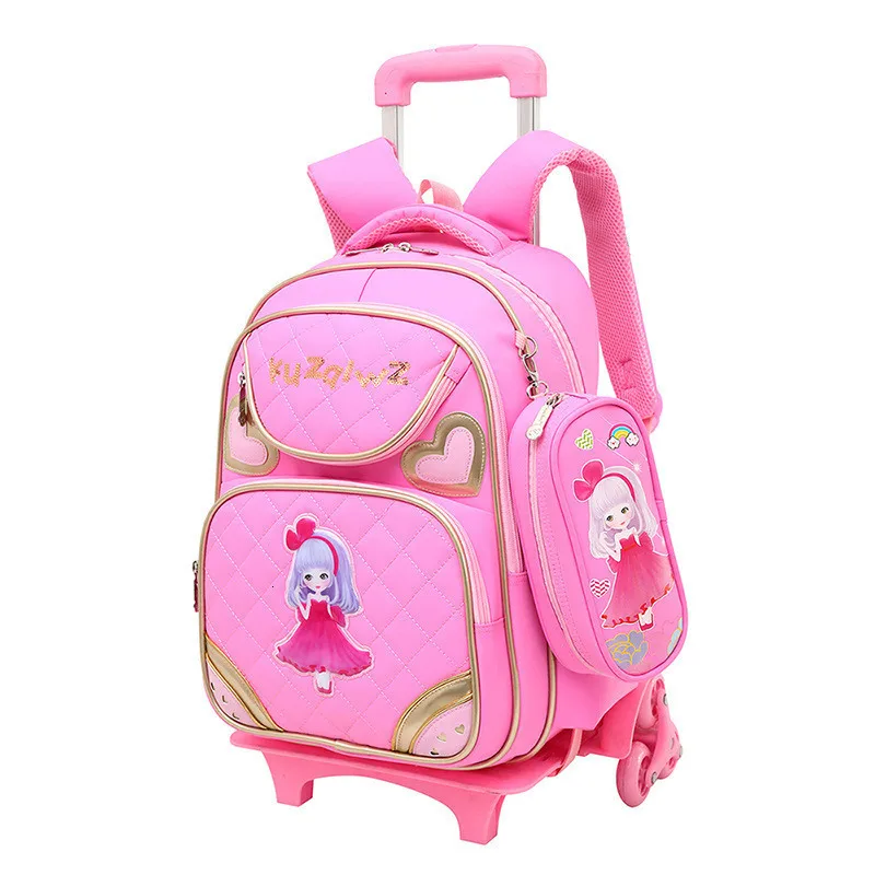Hot Product sets 2PCS Trolley Wheeled Backpack Primary Girls Climb the stairs school bag children Detachable wa