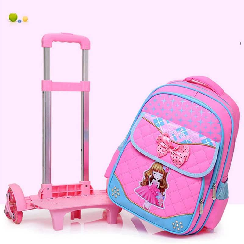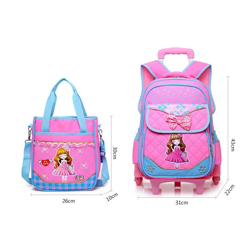 » Free Shipping Fashion 2pcs Set School Backpacks 6 Wheels Children School Bags For Girls Handbag Waterproof Cute K