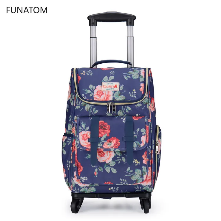 Limited Women Fashion Travel Trolley Bags Travel Backpacks with Wheels Luggage Trolley Girls School Backpac