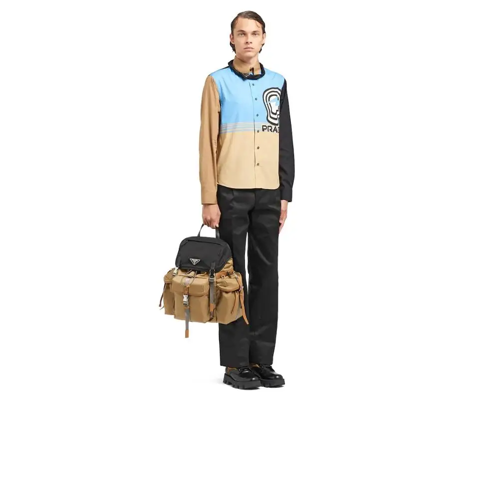 Discount Prada Technical Fabric and Saffiano Leather Backpack Men Laptop Travel Backpack 2VZ074_2DFC_F0ZV0_V