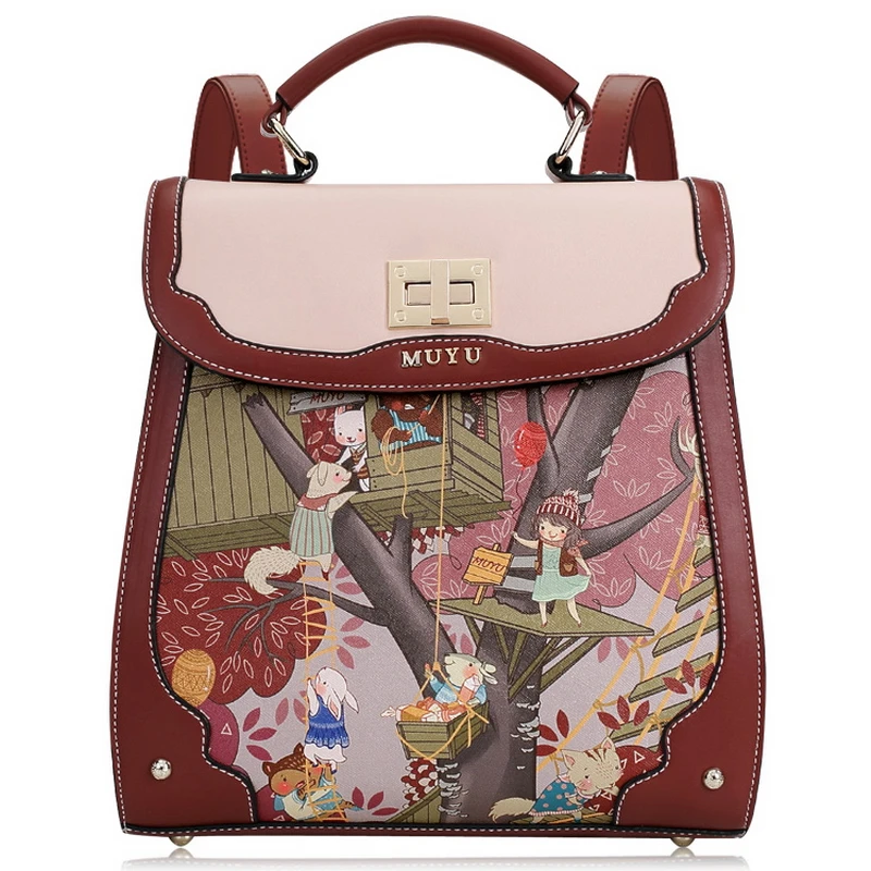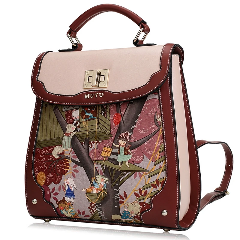 New Women Backpack Preppy Schoolbag Travel Bag Totes Borsa SnowJenny SJ Brand Cartoon Treehouse Fairy T