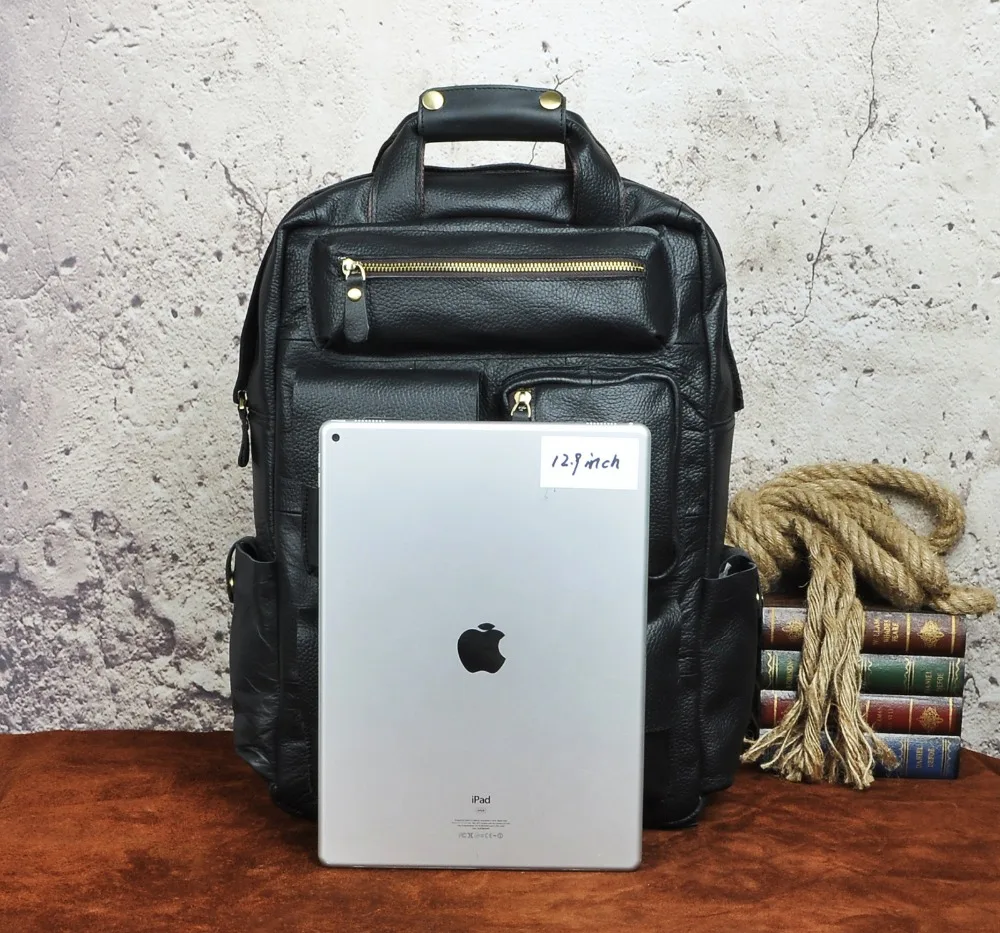 Home » backpack , hot product , travel » Promo Men Original Leather Fashion Travel University College School Bag Designer Male Black Backpack Dayp