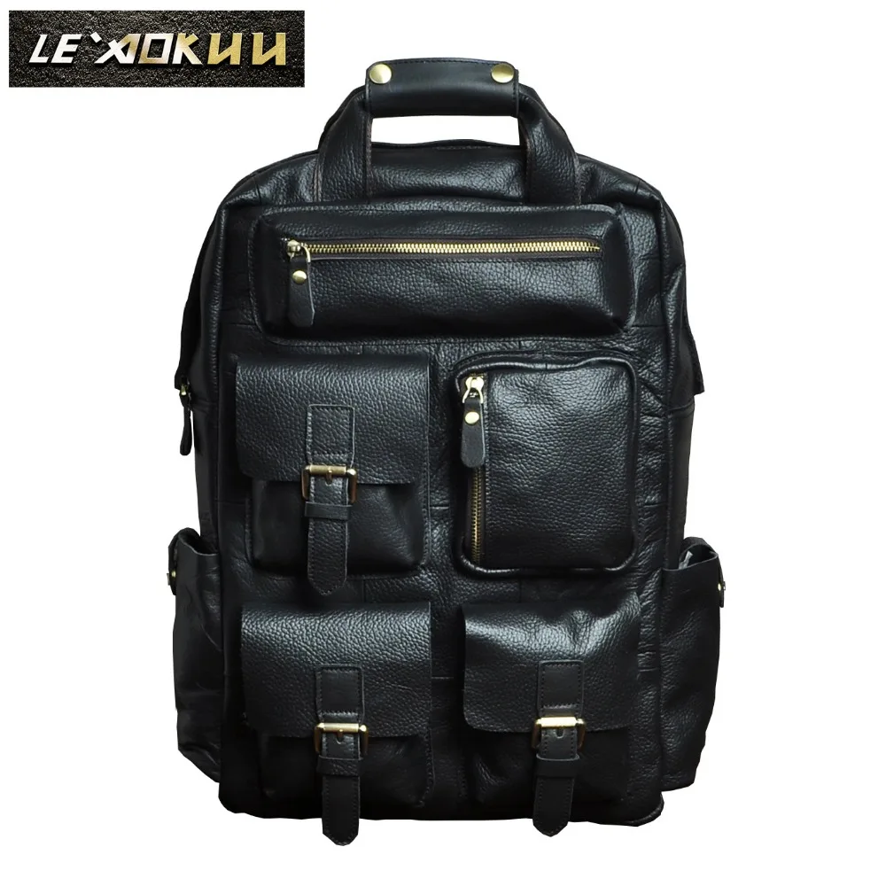 Best Men Original Leather Fashion Travel University College School Bag Designer Male Black Backpack Dayp