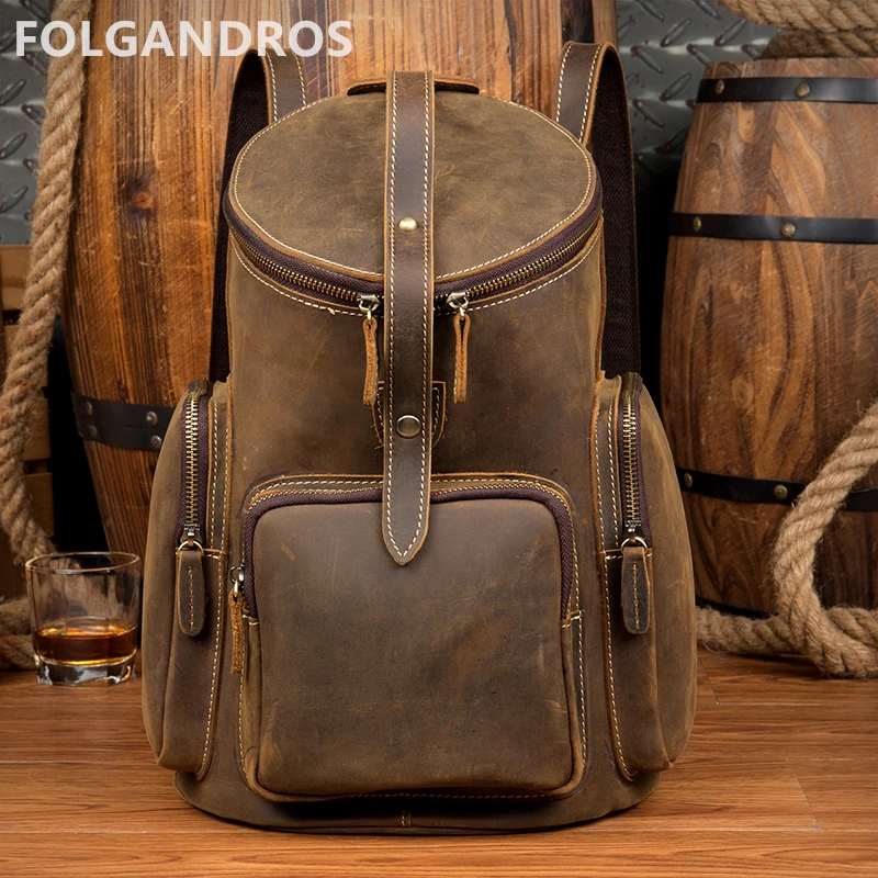 Home » backpack , hot product , travel » Best Brand Men Women Backpack 2018 Genuine Leather Designer Vintage Daypack Cowhide Barrel Shaped Travel