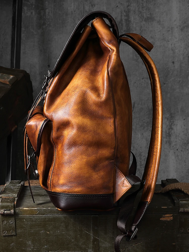 Promo Cow Leather Backpack Large capacity man travel mountaineering handmade bag drawstring eagle logo ba