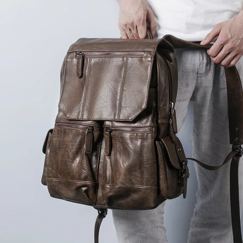 Promo Vintage Men Backpack Travel Bag Pu Leather Male Backpacks Large Capacity Student Laptop School Back